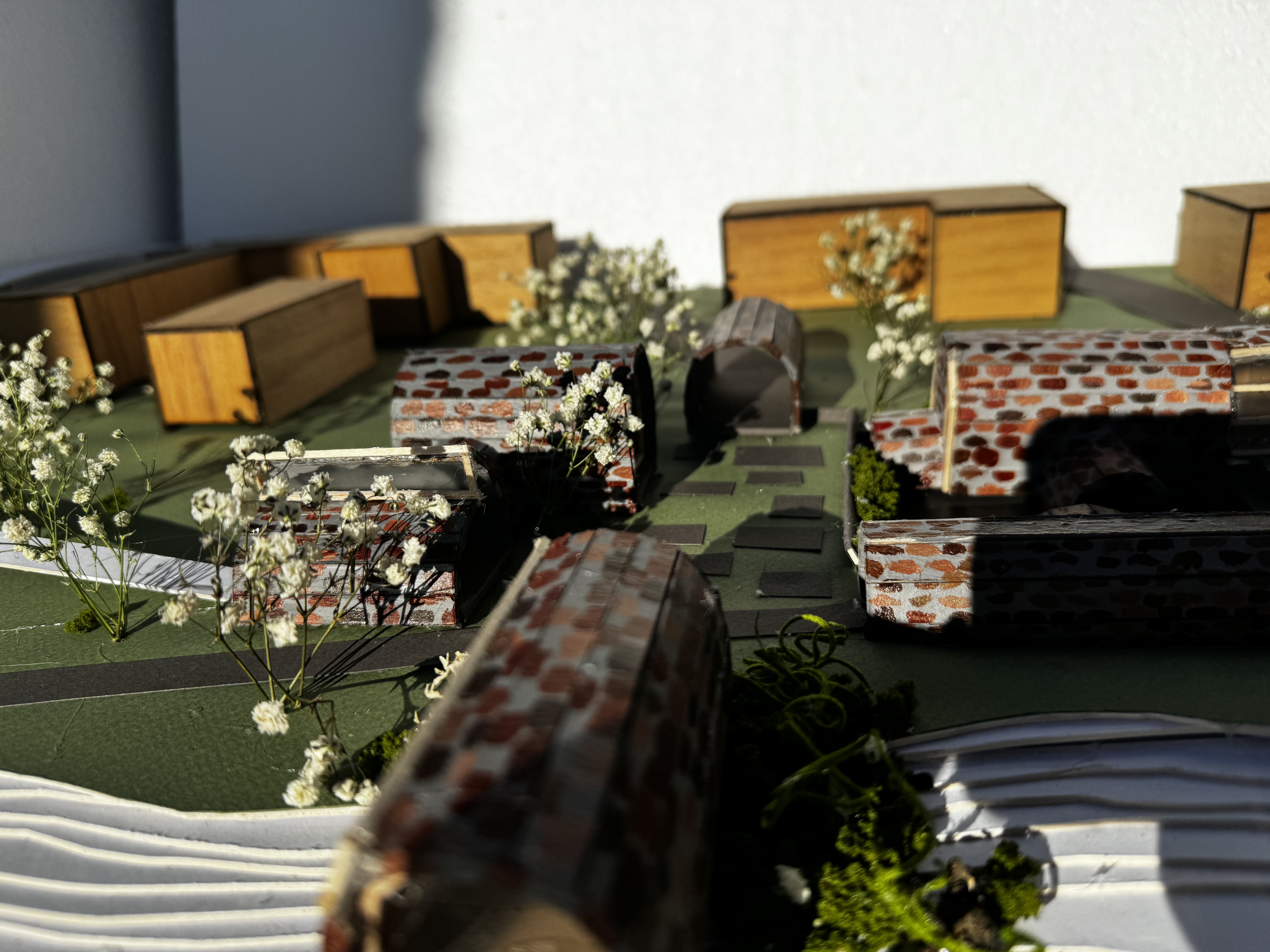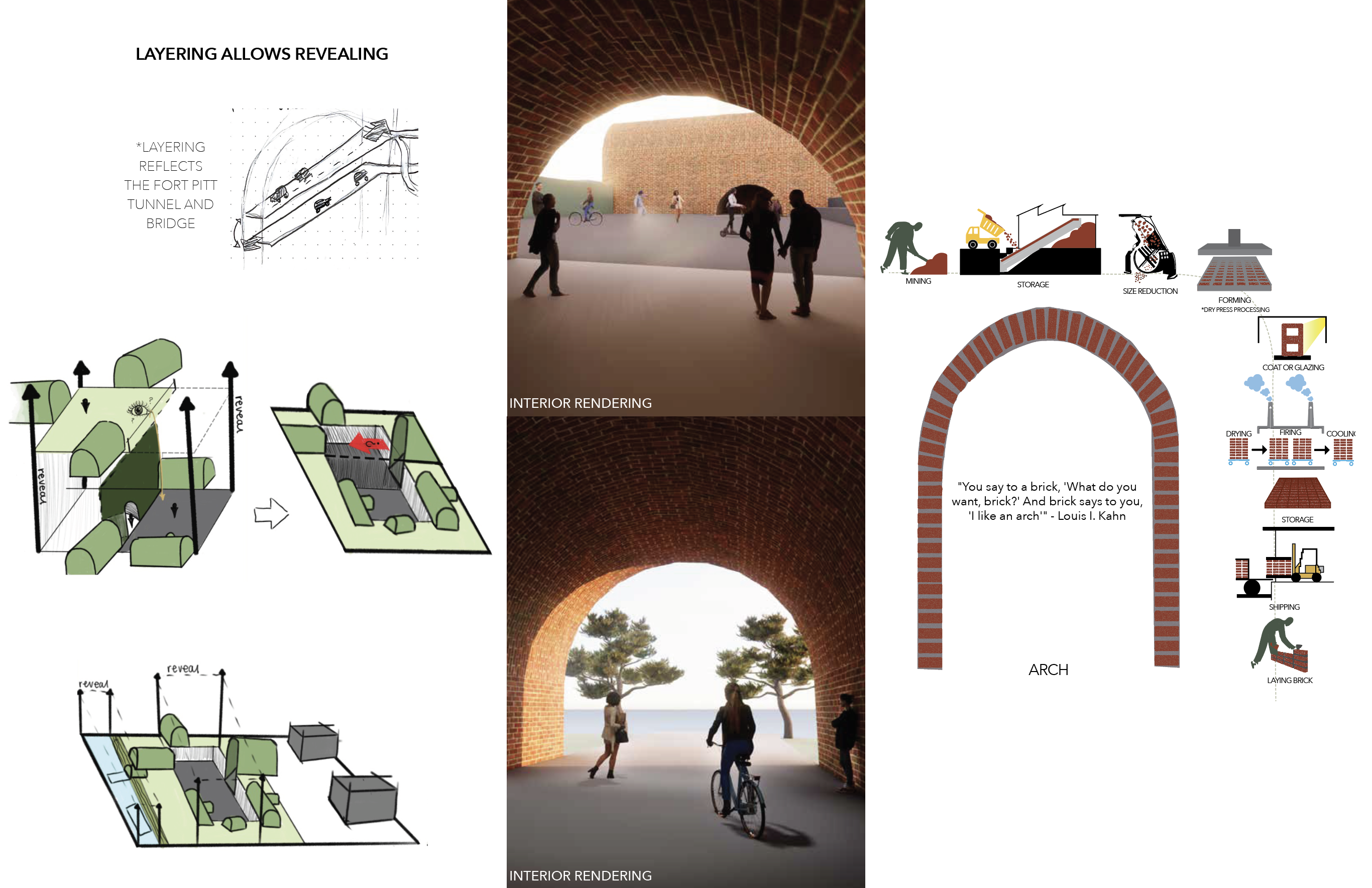 Tasked to craft a narrative for our site and sticking to that narrative, I chose the word meandering to base my design. Taking inspiration of Pittsburgh’s infrastructure, focusing on the Fort Pitt Tunnel. Capturing the experience of exiting the tunnel and experiencing the release of the exit and being in awe of the sight of downtown Pittsburgh’s skyline. Replicating that experience of the exit on my site. The word meandering, allowed the museum visitors to have their own autonomy walking around my site. Therefore, layering allows for more exploration, rather than having all buildings on one plane. Different buildings and the arrangement on my site is meant to replicate the exit of the Pitt Tunnel.